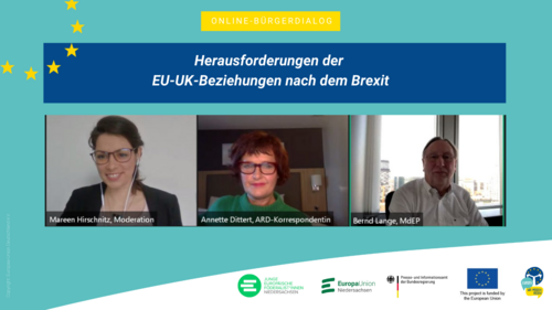 Bringen Sie Ihre Anliegen und Fragen ein bei unserem Online-Bürgerdialog „Oh Dear? Herausforderungen der EU-UK-Beziehungen nach dem Brexit“ und treten Sie in den virtuellen Dialog mit Annette Dittert, ARD-Korrespondentin in London und Studioleiterin des ARD UK Büros, und dem Europaabgeordneten Bernd Lange, Vorsitzender des Ausschusses für internationalen Handel des Europäischen Parlaments.   » weiterlesen