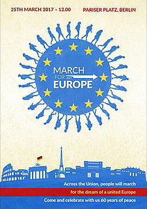Zum 60. Jubiläum der Römischen Verträge veranstaltet die UEF gemeinsam mit der JEF Europa, der Spinelli-Gruppe im Europäischen Parlament und vielen weiteren Partnern einen großen Demonstrationszug durch Rom. Der „March for Europe“ beginnt um 12 Uhr an der Piazza della Bocca della Verità im historischen Zentrum. Am Vormittag findet eine Konferenz mit prominenten Rednern im Kongresszentrum in der Nähe des Spanischen Platzes statt. Seien Sie dabei, wenn Föderalistinnen und Föderalisten aus ganz Europa Flagge zeigen für unsere Vision… » weiterlesen